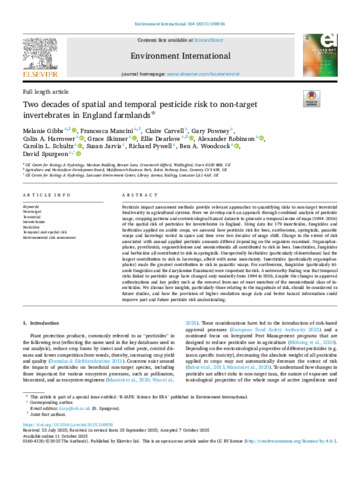 Two decades of spatial and temporal pesticide risk to non-target invertebrates in England farmlands.