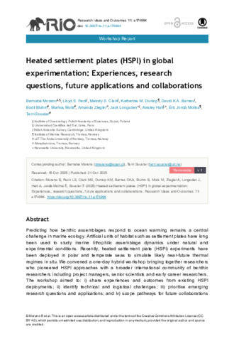 Heated settlement plates (HSPl) in global experimentation: Experiences, research questions, future applications and collaborations.