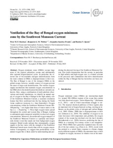 Ventilation of the Bay of Bengal oxygen minimum zone by the Southwest Monsoon Current.