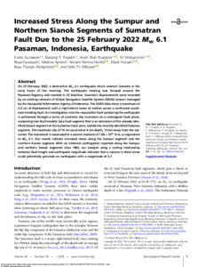 Increased Stress Along the Sumpur and Northern Sianok Segments of Sumatran Fault Due to the 25 February 2022 Mw 6.1 Pasaman, Indonesia, Earthquake.