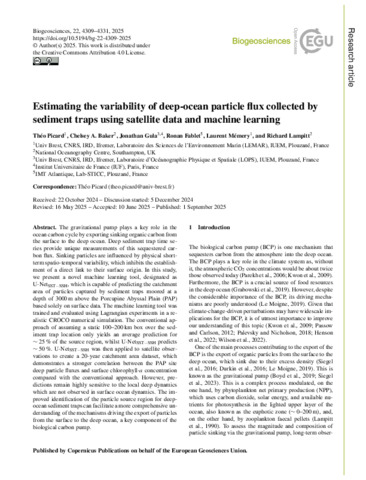 Estimating the variability of deep-ocean particle flux collected by sediment traps using satellite data and machine learning.
