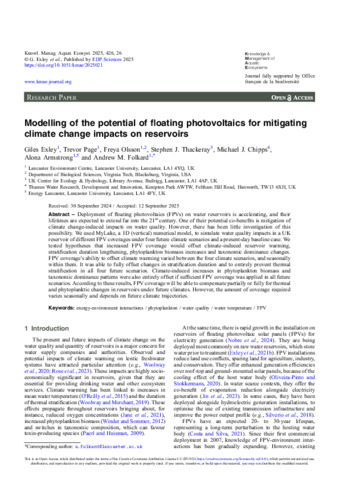 Modelling of the potential of floating photovoltaics for mitigating climate change impacts on reservoirs [in special issue: Ecological, evolutionary and environmental implications of floating photovoltaics]