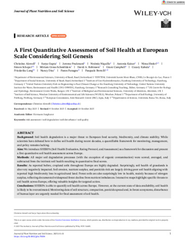 Journal of Plant Nutrition and Soil Science - 2025 - Alewell - A First Quantitative Assessment of Soil Health at European.pdf - Published Version Available under License Creative Commons Attribution 4.0. Download (1MB) | Preview |
