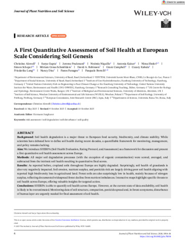 •Aim: We introduce SHERPA (Soil Health Evaluation, Rating Protocol, and Assessment) as a framework for discussion and present a first quantitative soil health assessment across Europe.