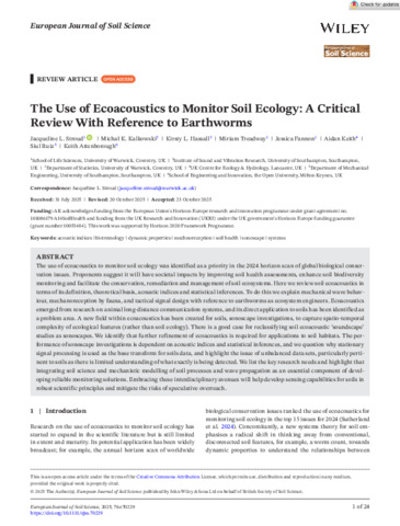 The use of ecoacoustics to monitor soil ecology: a critical review with reference to earthworms.