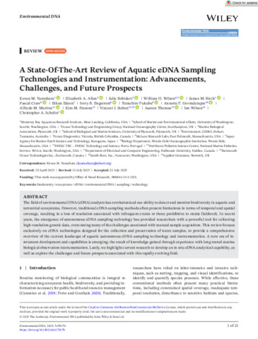 A state‐of‐the‐art review of aquatic eDNA sampling technologies and instrumentation: Advancements, challenges, and future prospects.