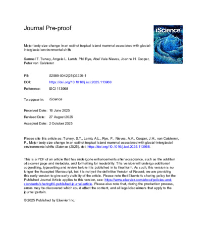 Major body size change in an extinct tropical island mammal associated with glacial-interglacial environmental shifts.