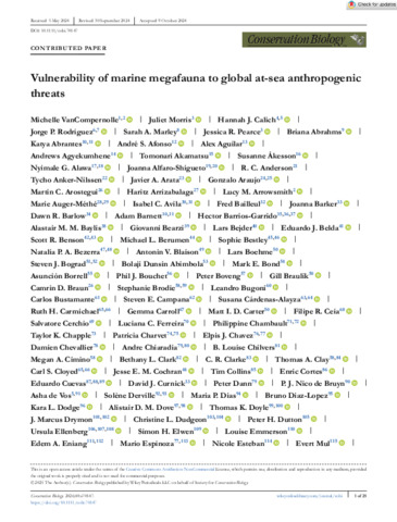 Vulnerability of marine megafauna to global at‐sea anthropogenic threats.