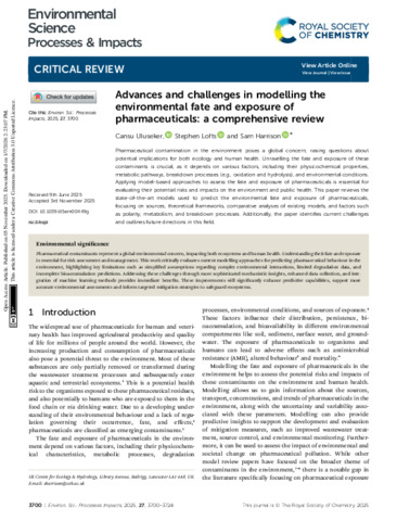 Advances and challenges in modelling the environmental fate and exposure of pharmaceuticals: a comprehensive review.
