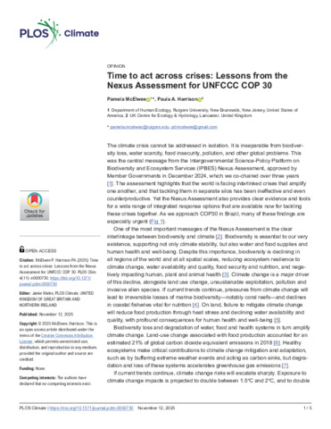 Time to act across crises: lessons from the nexus assessment for UNFCCC COP 30 [Opinion].
