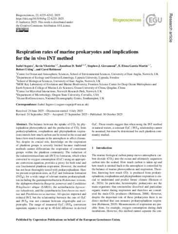 Respiration rates of marine prokaryotes and implications for the in vivo INT method.