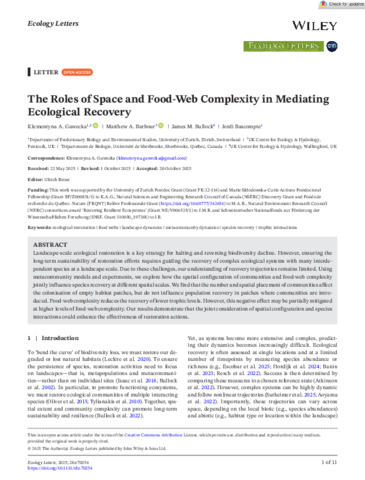 The roles of space and food‐web complexity in mediating ecological recovery.