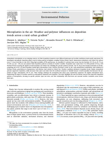 Microplastics in the air: weather and polymer influences on deposition trends across a rural–urban gradient.