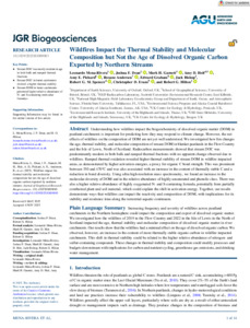 Wildfires impact the thermal stability and molecular composition but not the age of dissolved organic carbon exported by Northern streams.