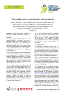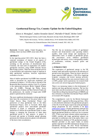 Monaghan, Alison A.; Gonzalez Quiros, Andres; O'Grady, Michelle; Curtis, Robin. 2025 Geothermal Energy Use, Country Update for the United Kingdom. In: Shaping the Future : European Geothermal Congress 2025, Zurich, Switzerland, 6-10 Oct 2025.