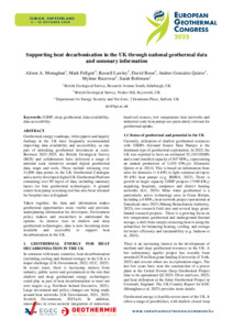 Supporting heat decarbonisation in the UK through national geothermal data and summary information