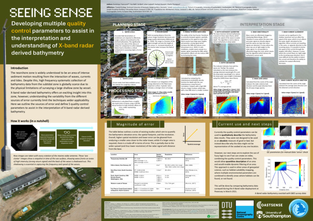 Seeing sense: developing multiple quality control parameters to assist in the interpretation and understanding of X-Band radar derived bathymetry.