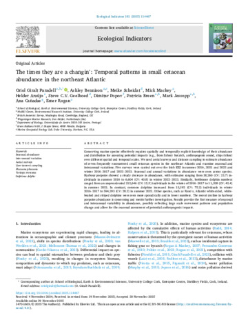 The times they are a changin’: Temporal patterns in small cetacean abundance in the northeast Atlantic.