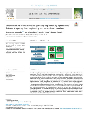 Enhancement of coastal flood mitigation by implementing hybrid flood defences integrating hard engineering and nature-based solutions.