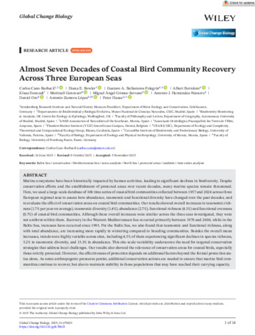 Almost seven decades of coastal bird community recovery across three European seas.