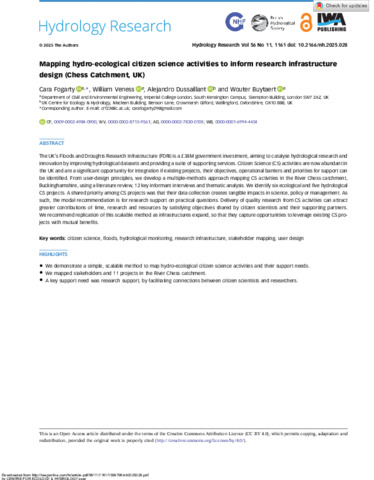 Mapping hydro-ecological citizen science activities to inform research infrastructure design (Chess Catchment, UK).