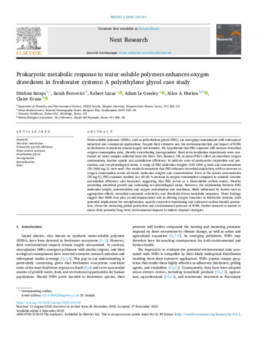 Prokaryotic metabolic response to water-soluble polymers enhances oxygen drawdown in freshwater systems: A polyethylene glycol case study.