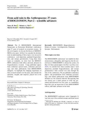 From acid rain to the Anthropocene: 37 years of BIOGEOMON. Part 2 – scientific advances.