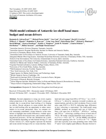Multi-model estimate of Antarctic ice-shelf basal mass budget and ocean drivers.