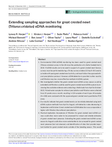 Extending sampling approaches for great crested newt (Triturus cristatus) eDNA monitoring.