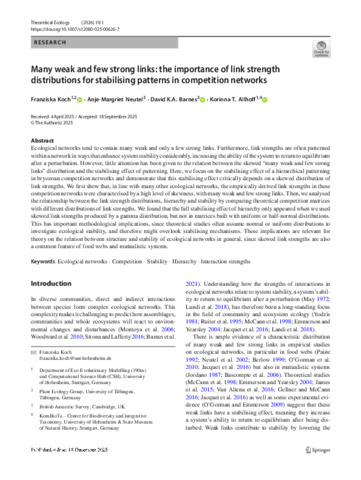 Many weak and few strong links: the importance of link strength distributions for stabilising patterns in competition networks.