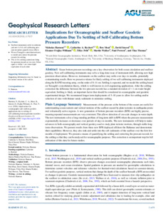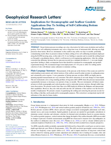 Implications for oceanographic and seafloor geodetic applications due to settling of self‐calibrating bottom pressure recorders.