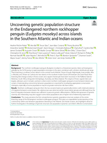 Uncovering genetic population structure in the Endangered northern rockhopper penguin (Eudyptes moseleyi) across islands in the Southern Atlantic and Indian oceans.