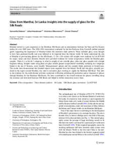 Dobson, Samantha; Henderson, Julian; Oikonomou, Artemios; Chenery, Simon. 2025 Glass from Manthai, Sri Lanka: insights into the supply of glass for the Silk Roads. Archaeological and Anthropological Sciences, 17 (12), 246. 10.1007/s12520-025-02344-x