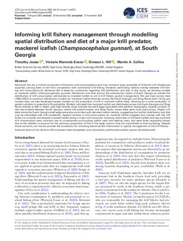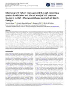 Informing krill fishery management through modelling spatial distribution and diet of a major krill predator, mackerel icefish ( Champsocephalus gunnari ), at South Georgia.
