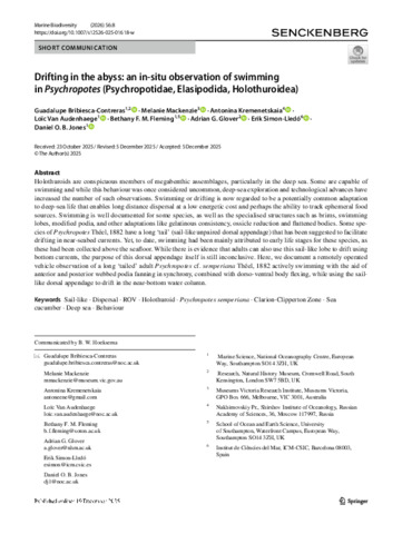 Drifting in the abyss: an in-situ observation of swimming in Psychropotes (Psychropotidae, Elasipodida, Holothuroidea).