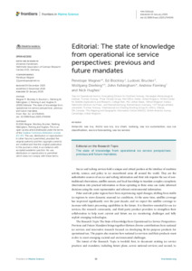 Editorial: The state of knowledge from operational ice service perspectives: previous and future mandates.