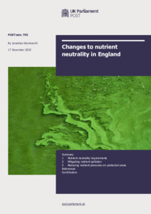 Wentworth, Jonathan. 2025 Changes to nutrient neutrality in England. London, Parliamentary Office of Science and Technology (POST), 69pp. (POSTnote 755)