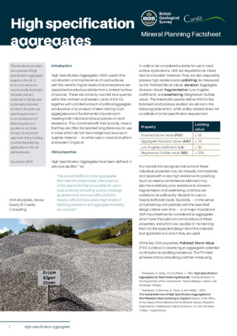 This factsheet provides an overview of high specification aggregate supply in the UK. It is one of a series on economically important minerals that are extracted in Britain and is primarily intended to inform the land-use