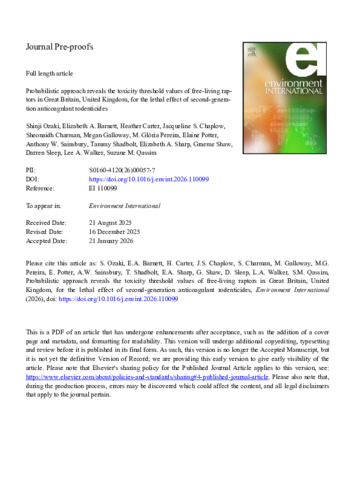 Probabilistic approach reveals the toxicity threshold values of free-living raptors in Great Britain, United Kingdom, for the lethal effect of second-generation anticoagulant rodenticides.