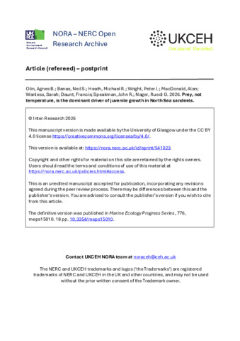 Prey, not temperature, is the dominant driver of juvenile growth in North Sea sandeels.