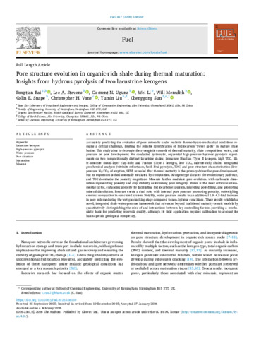 Accurately predicting the evolution of pore networks under realistic thermo-hydro-mechanical conditions remains a critical challenge, limiting the reliable identification of hydrocarbon “sweet spots” in mature shale basins. This study aims to decouple the synergistic controls of thermal maturity, shale composition, water, and pressure on pore development. We conducted systematic, sequential high-pressure hydrous pyrolysis experiments on two compositionally distinct lacustrine shales, immature Huadian (Type II kerogen, high TOC, illite–smectite mixed-layer clay-rich) and Fushun (Type I kerogen, low TOC, siderite-rich) shales. Integrated geochemical analyses (vitrinite reflectance, Rock-Eval pyrolysis, TOC) and pore structure characterization (low-pressure N2/CO2 adsorption, SEM) revealed that thermal maturity is the primary driver for pore development, but its expression is fundamentally mediated by composition. Kerogen type dictates the evolutionary pathway, and TOC dominates the porosity magnitude. Minerals further modulate pore evolution, with carbonate dissolution regenerating porosity and clay stability determining pore integrity. Water is the most critical environmental factor, enhancing porosity by facilitating hydrocarbon expulsion, inhibiting pore-filling, and promoting mineral dissolution. Pressure exerts a dual role, with internal pore pressure promoting porosity, outweighing external compaction in our closed system. Notably, water pressure results in an additional 1.9–4.5-fold increase in pore volume during the wet gas cracking stage compared to non-hydrous conditions. These results establish a novel, integrated shale-water-pressure framework that advances beyond traditional maturity-centric models by quantitatively distinguishing the roles of and interactions between key controlling factors, providing a mechanistic basis for predicting reservoir quality, although its field application requires calibration to account for basin-specific geological complexity.