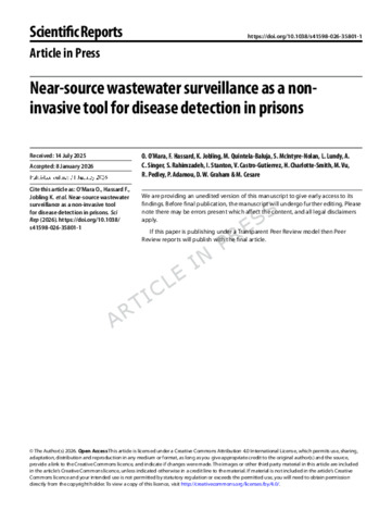 Near-source wastewater surveillance as a non-invasive tool for disease detection in prisons.