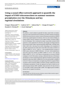 Using a causal effect network approach to quantify the impact of ENSO teleconnections on summer monsoon precipitation over the Himalayas and key regional circulations.