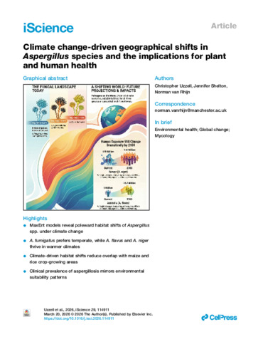 Climate change-driven geographical shifts in Aspergillus species habitat and the implications for plant and human health.