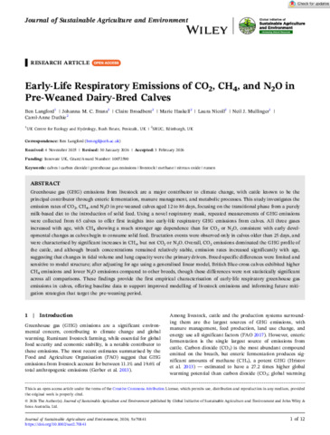 Early-life respiratory emissions of CO₂, CH₄, and N₂O in pre-weaned dairy-bred calves.