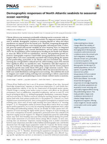 Demographic responses of North Atlantic seabirds to seasonal ocean warming.