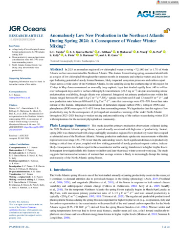 Anomalously low new production in the Northeast Atlantic during spring 2024: A consequence of weaker winter mixing?