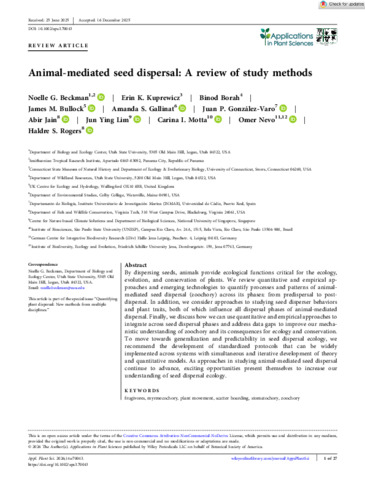 Animal‐mediated seed dispersal: a review of study methods [in special issue: Quantifying plant dispersal: new methods from multiple disciplines]