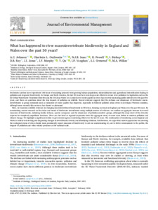 •Here, we examine available evidence on changing macroinvertebrate biodiversity in UK rivers, focusing on trends in England and Wales over the past 30 years. By summarising current research on the status and trends of freshwater invertebrates using multiple sources of evidence, we confirm an aggregate increase in several measures of biodiversity, including family richness, species occupancy and the abundance of pollution-sensitive groups, although this stops short of the diversity expected in completely unpolluted locations. There are also local or regional departures from this aggregate trend, in some cases linked to nutrient pollution and climate change. We highlight a significant decline in government agency monitoring effort over the last 15 years. The continuation of monitoring across England and Wales is critical to detecting and diagnosing changes in invertebrate diversity and identifying solutions. Furthermore, we argue that current approaches for assessing the ecological status of rivers should more prominently report measures of biodiversity to aid our understanding of, and to better communicate to the public, the impacts of pollution and other related pressures at the national scale.