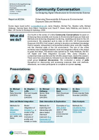 Report on Community Conversation #4: enhancing discoverability & access to environmental exposure data and methods.